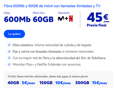 Nuestra mejor tarifa con Movistar Plus+ y Netflix